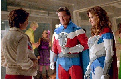 “Sky High” also has an appealing cast—Michael Angarano is an appealing lead, Danielle Panabaker and Mary Elizabeth Winstead are effective as Will’s romantic-triangle subjects, Kurt Russell and Kelly Preston are brilliant as the superheroes who save the world in costume on duty and have secret identities as mild-mannered real estate agents and Will’s loving parents, Bruce Campbell and Dave Foley are amazing as two fun faculty members, Steven Strait strays far from the bully stereotype and becomes someone easy to like (when you don’t get on his bad side, that is—he’s a suitable bully for this movie), and Kevin Hefferman is just fantastic as the overweight school bus driver Ron Wilson. All of these actors look like they’re having a great time making this film.