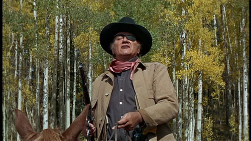 In “True Grit,” based on a novel by Charles Portis, John Wayne plays Rooster Cogburn—a one-eyed, overweight, constantly drunk U.S. Marshal. He’s approached by the movie’s heroine—a young woman named Mattie Ross (Kim Darby) whose father has recently been killed by a drunken coward—to lead a manhunt into the Indian Territory to hunt down the rogue that killed her father and see him to justice. He agrees, but only after a bargain, and they set off on their journey. Accompanying them on the hunt is a Texas Ranger named La Boeuf (Glen Campbell), who seeks the same scoundrel for a reward.