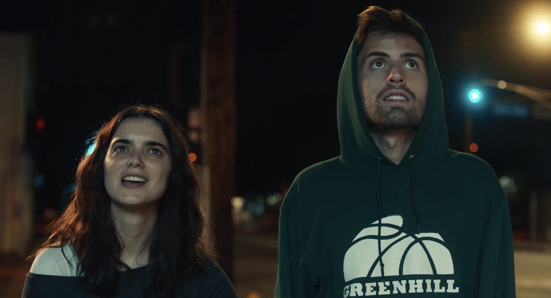 The story: Alex (Cooper Raiff, who also wrote and directed the film) is a young college freshman dealing with loneliness. He’s far from home; he has no friends; he doesn’t get along with his party-animal roommate Sam (Logan Miller–Martin from Love, Simon); and he regularly calls his mother (Amy Landecker) and kid sister (Olivia Welch) to chat. (Even when Alex attends a frat party, at the titular dwelling, and gets hit on by a gorgeous young woman, he makes up an excuse to leave and call Mom. This Alex kid isn’t your typical college-movie character even at the start–he needs help. Bad.) It’ll take a special someone to get him out of his comfort zone, and he finds that “special someone” in his dorm’s RA, Maggie (Dylan Gelula), who invites him to her room to “hang out” (even Alex knows what she means by that). After hooking up, they spend a pleasant night of conversation (as well as misadventures about town) together.